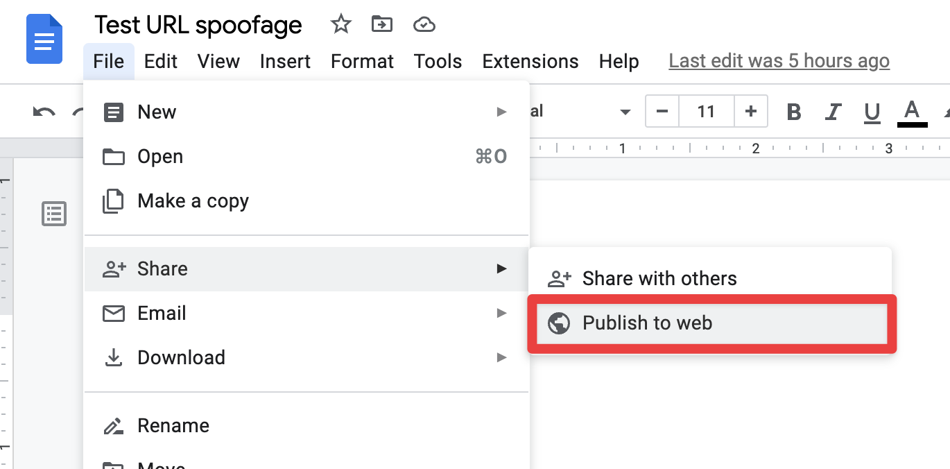 Similarly, any Google Doc that is shared via the “publish to web” option can be spoofed.
