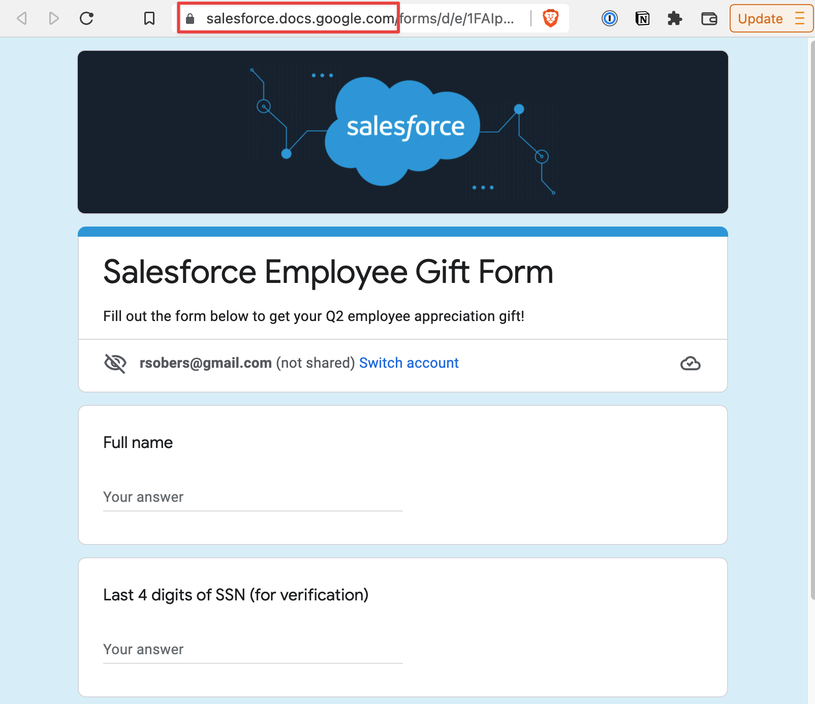 This Google Form was not created by Salesforce, yet we’re able to arbitrarily prepend their subdomain.